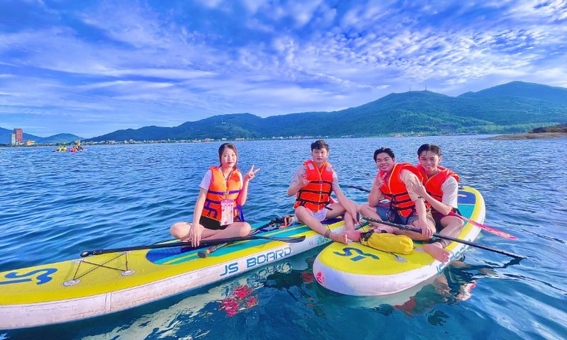 Với chèo SUP, du khách có thể tận hưởng cảm giác thư thái khi trôi nhẹ trên mặt nước, hòa mình vào thiên nhiên. Đây là hoạt động không yêu cầu thể lực cao, phù hợp với nhiều lứa tuổi. Khi tham gia, du khách chỉ cần chuẩn bị đồ bơi và kem chống nắng.